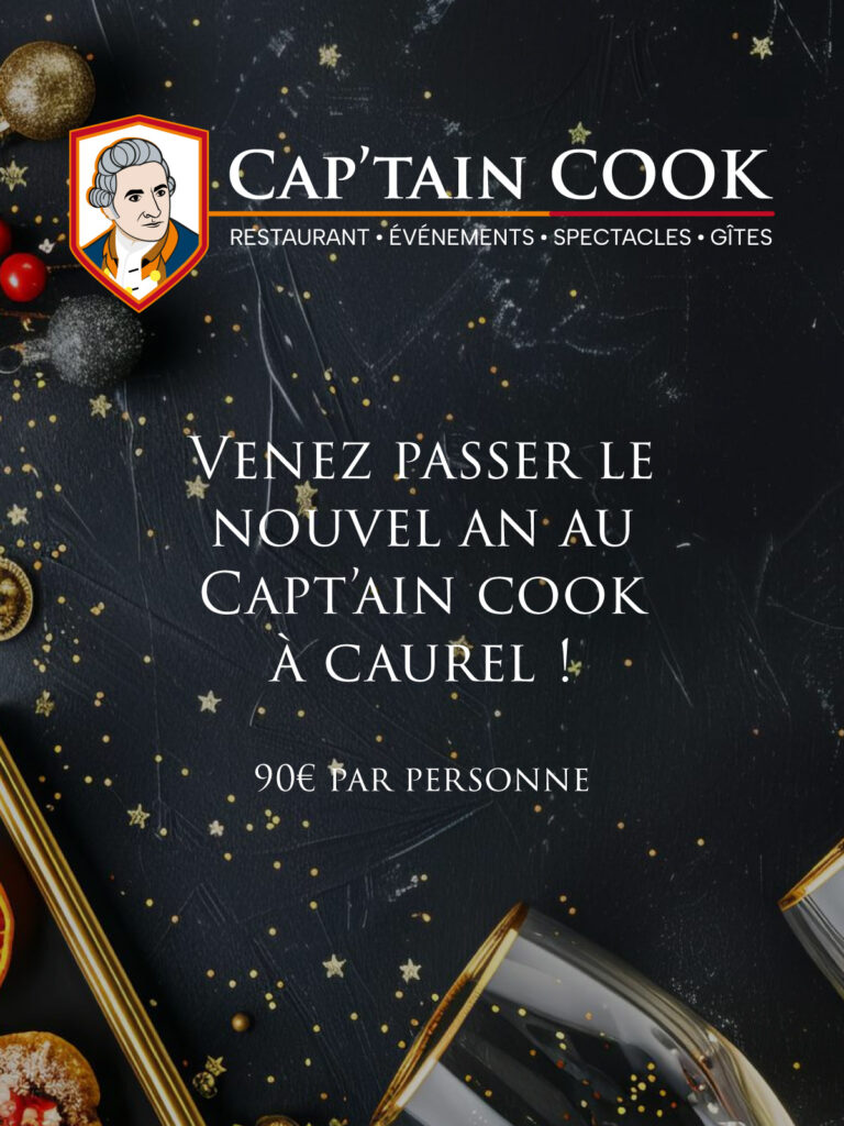 Venez vivre une soirée chaleureuse et festive pour accueillir la nouvelle année dans une ambiance soignée et gourmande au restaurant Le Capt’ain Cook à Caurel.